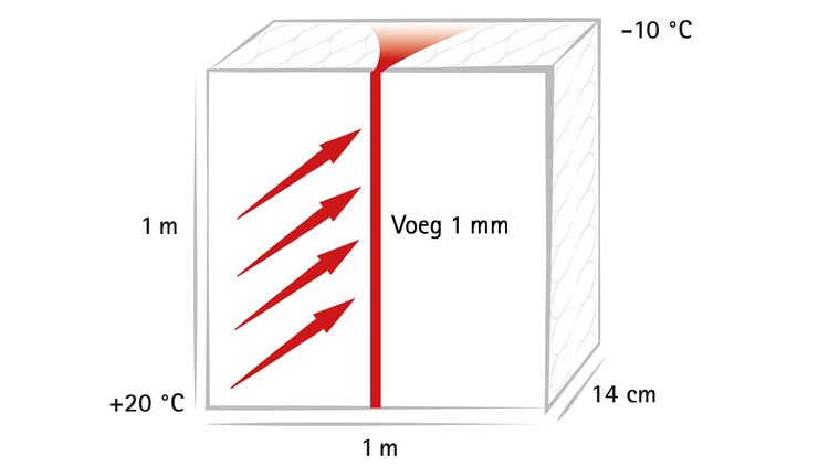 Onderzoek van het Institut für Bauphysik in Stuttgart bevestigt dat de U-waarde van een thermisch geïsoleerde constructie met een factor 4,8 verslechtert. ¹⁾ Dit betekent in werkelijkheid dat er net zoveel energie nodig is om een huis te verwarmen met een woonoppervlak van 80 m² en met lekkages in de luchtdichte folie dan een luchtdicht huis met ca. 400 m² woonoppervlak.