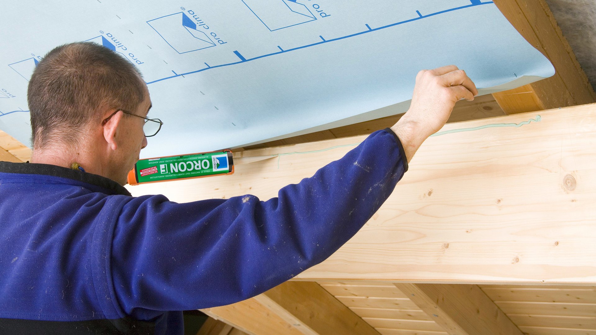 Baan ca. 4 cm over aangrenzende bouwelementen heen leggen, zodat hier later een luchtdichte aansluiting mogelijk is.