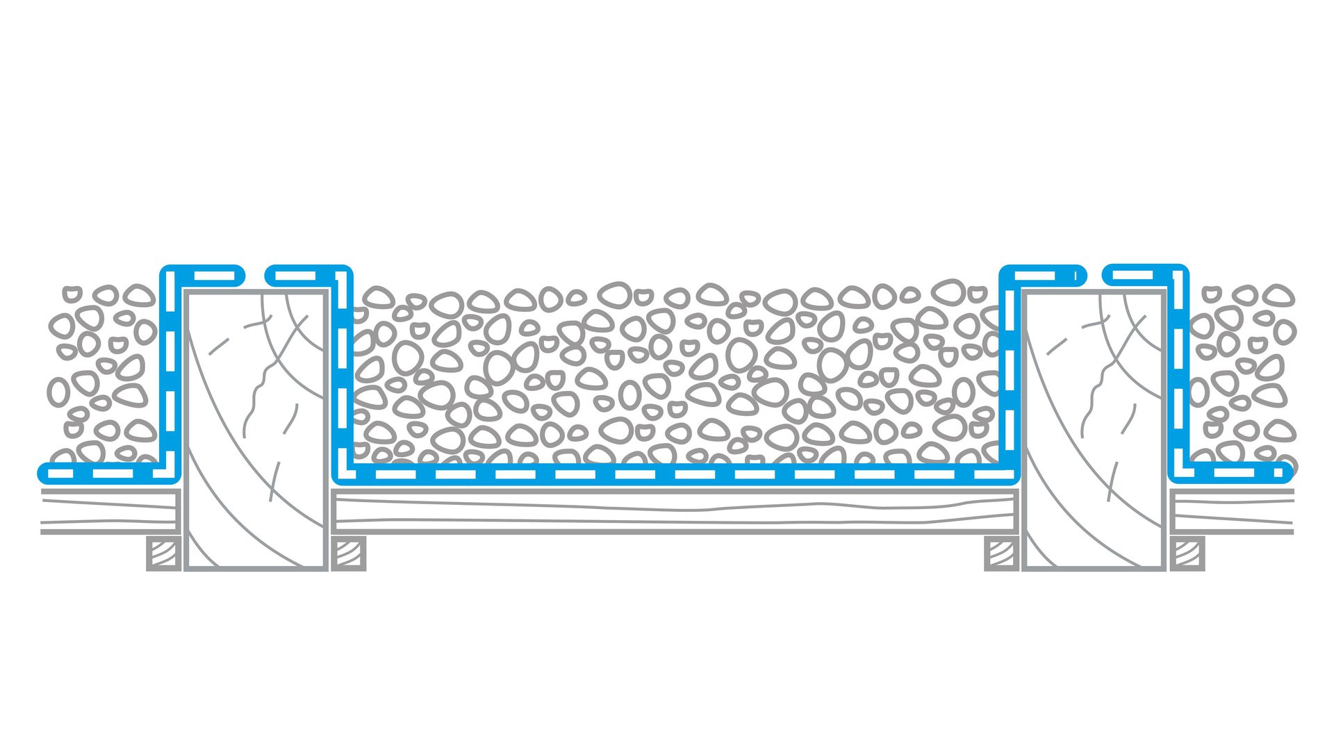 - Tegen de zijkant van opstaande elementen (bijv. plafondbalken) omhoogleiden en met nieten of spijkers fixeren.