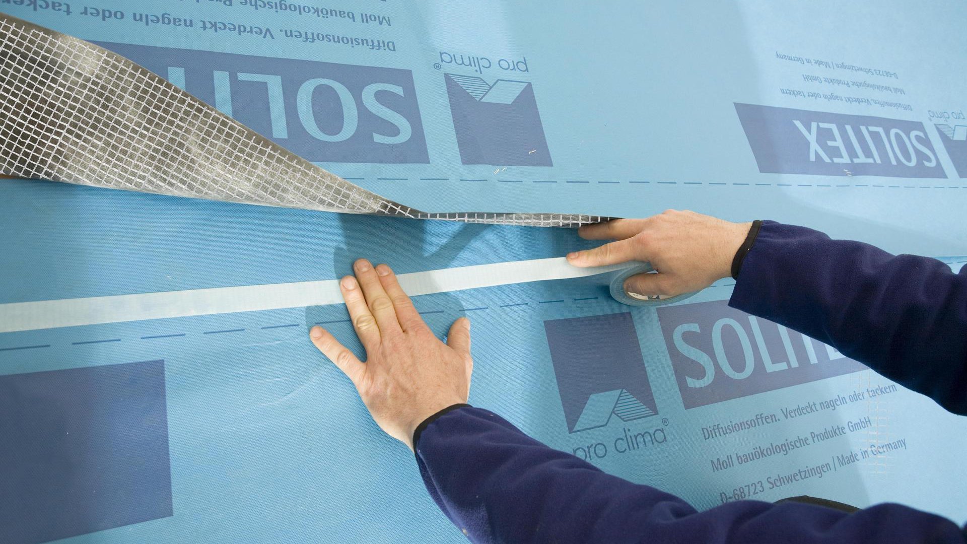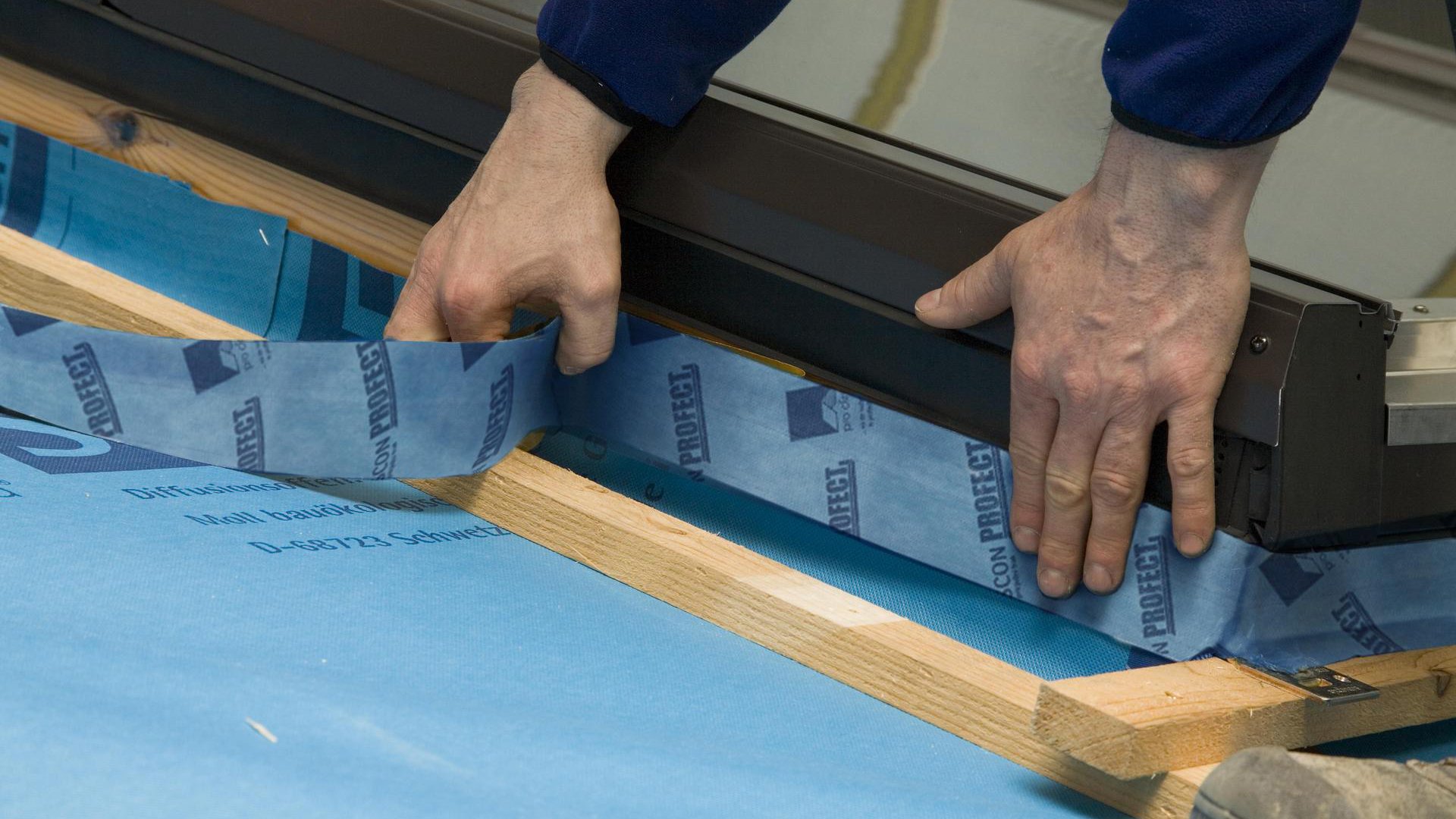 Sluit SOLITEX banen aan op gladde oppervlakken, zoals dakramen, schoorstenen, buizen en andere dakinbouwcomponenten, met systeemtape TESCON PROFECT.