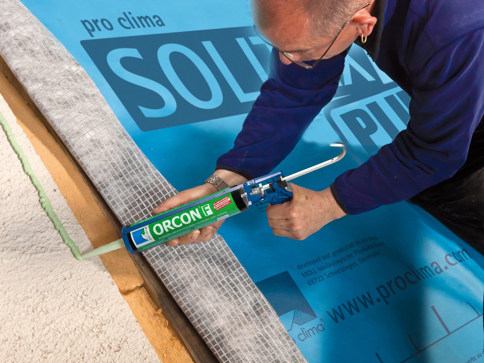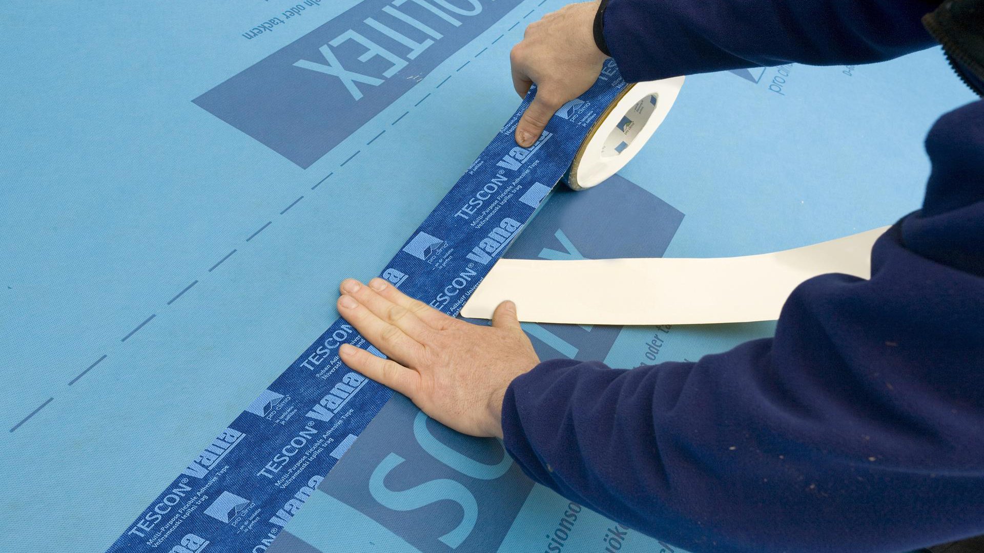 Vervolgens luchtdicht verlijmen met systeem-tape TESCON VANA.