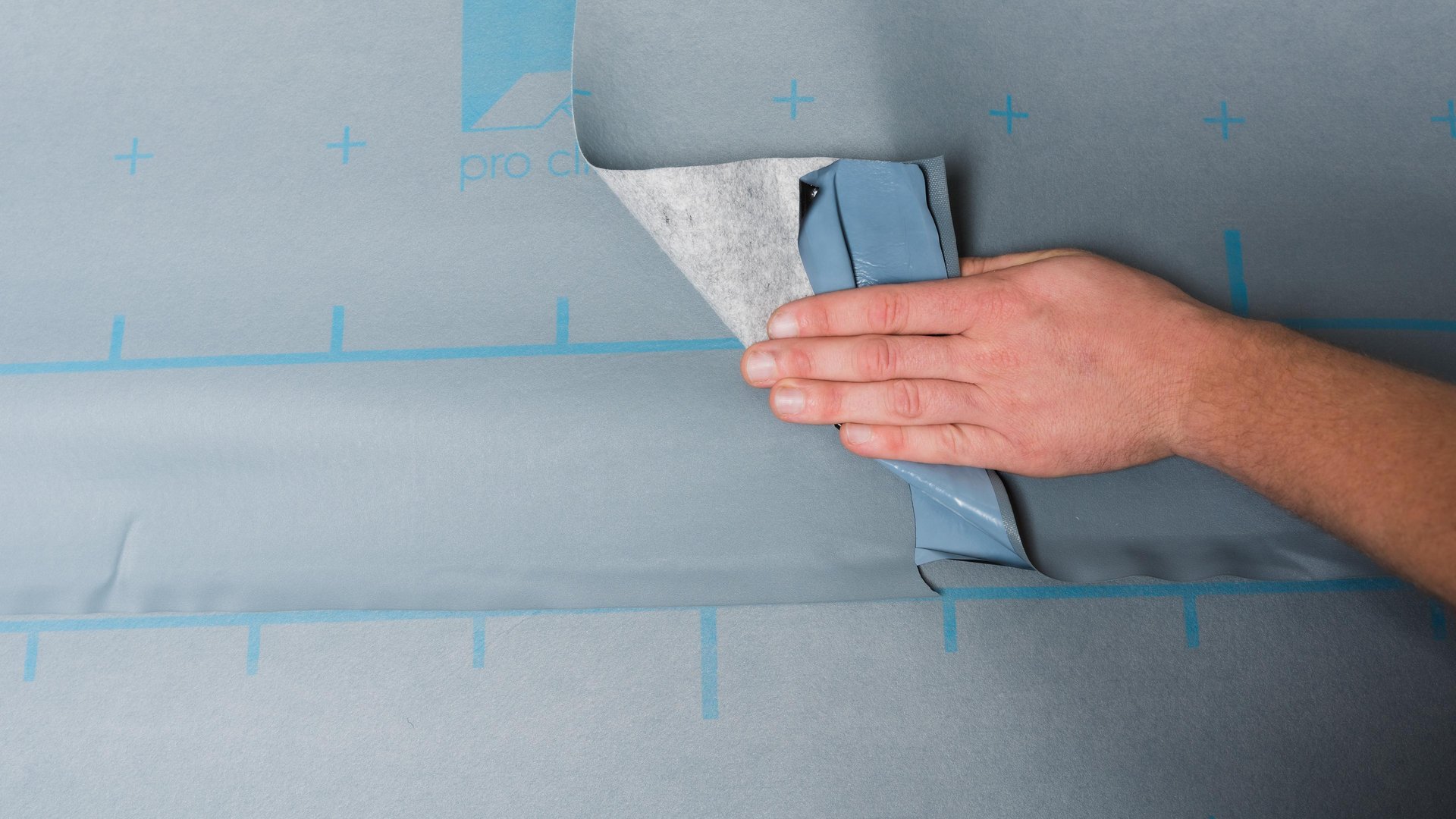 Verlijm de folieoverlapping stapsgewijs kreukvrij met de geïntegreerde zelfklevende connect-tape. Plaats de afdichtlip aan de onderkant van de folie tegen de opgedrukte markering. Wrijf de overlappingen stevig aan met de pro clima PRESSFIX. Zorg voor voldoende tegendruk.