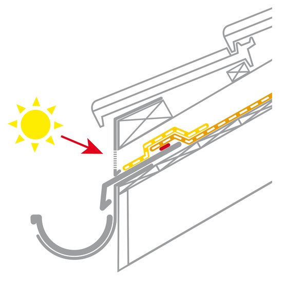 Dakvoetstrook die op SOLITEX WELDANO wordt aangebracht voor de afwerking van de open dakvoet met geperforeerd plaatmateriaal. Zorgt dat water van het onderdak naar de dakgoot wordt afgevoerd.