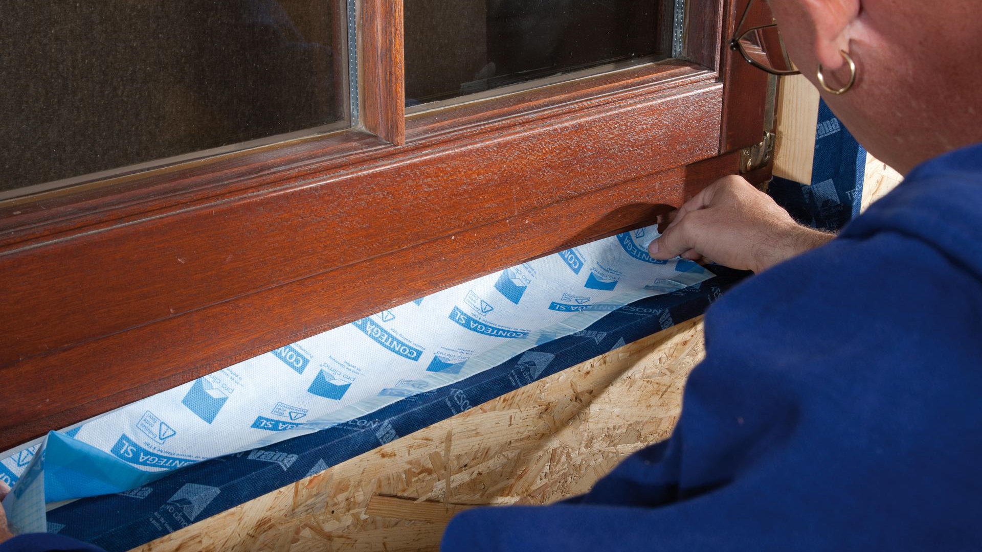 Is het raam reeds gemonteerd, wordt CONTEGA SL op het kozijn gekleefd.