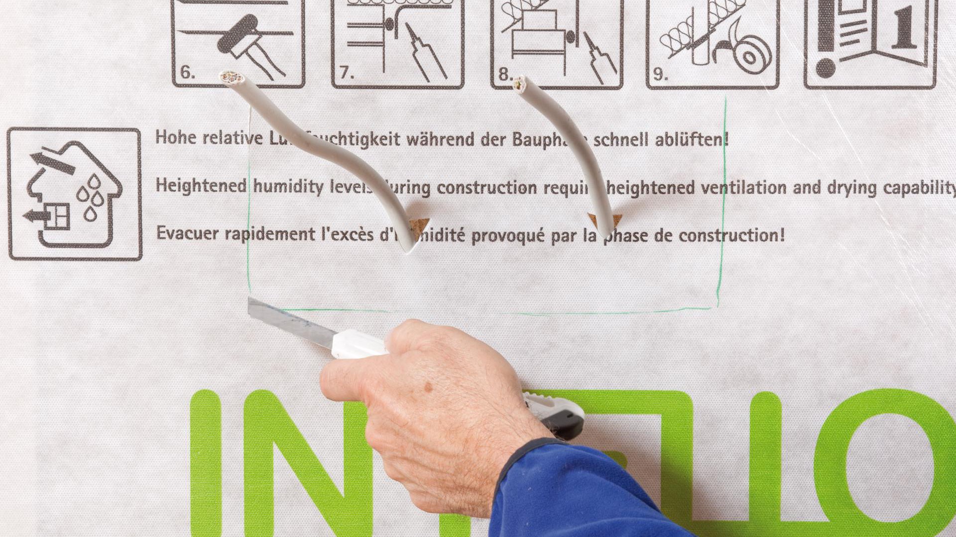 Positie van de INSTAABOX aftekenen en uitsparing in het luchtdichtingsvlak aanbrengen.
