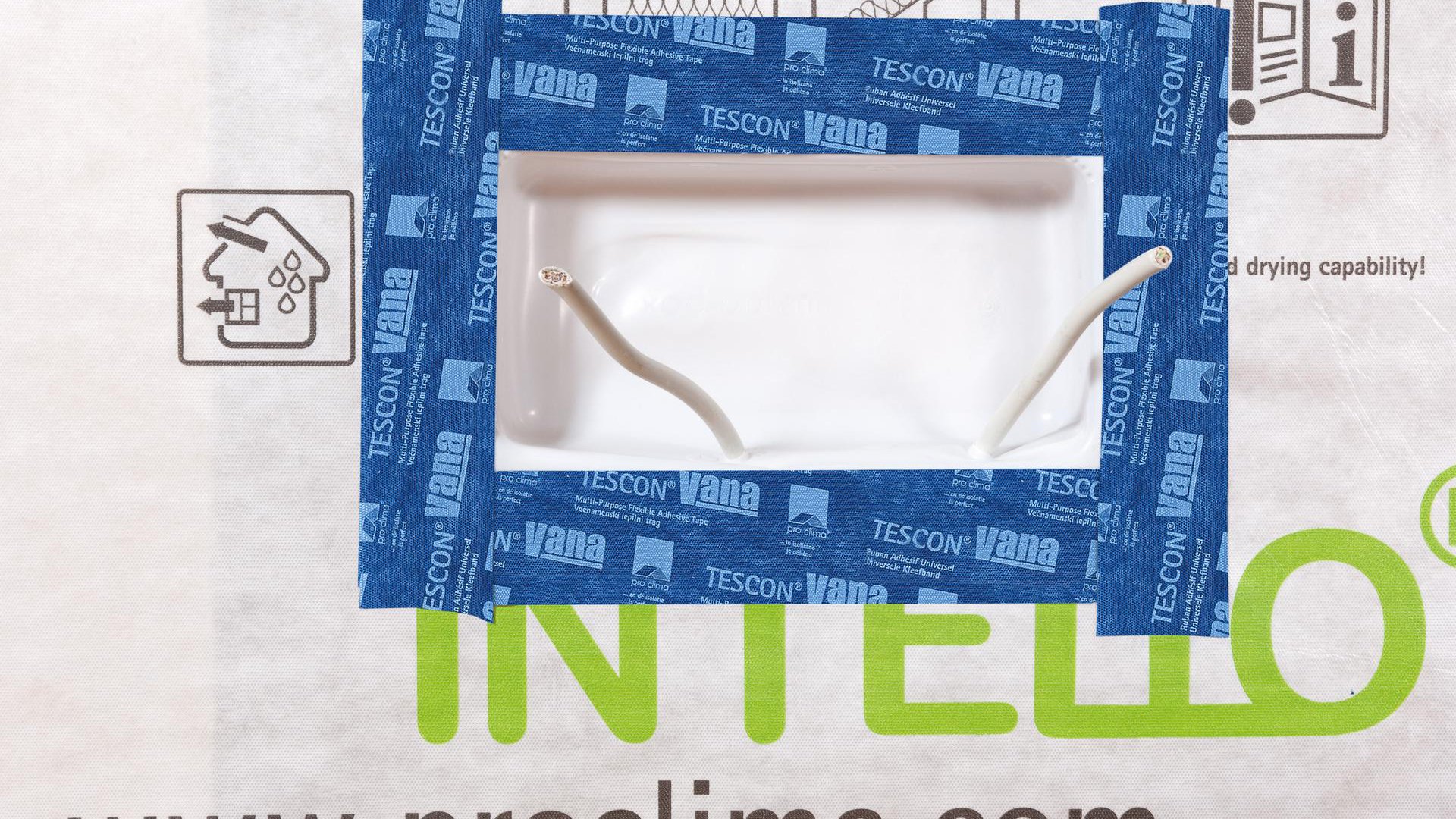 Box met doorgetrokken kabels recht in het luchtdichtingsvlak uitlijnen.