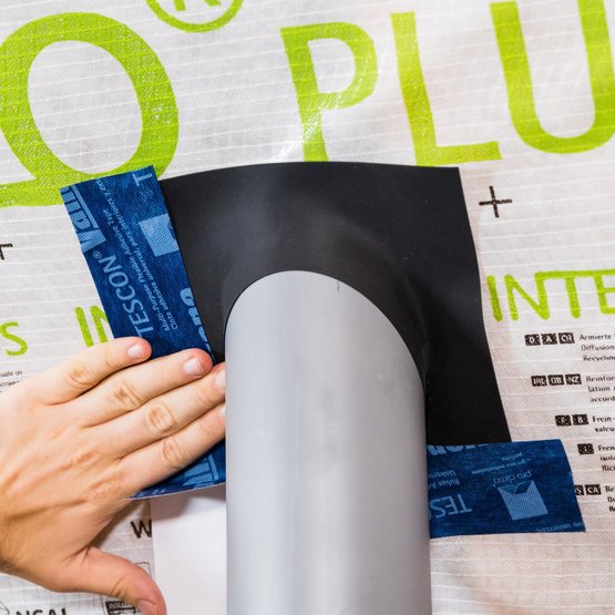 Voor het snel en duurzaam luchtdicht doorvoeren van buizen door de luchtdichtingslaag. Ook buiten toepasbaar, bijv. bij onderdaken of renovatiedampremmen. Verkleving met TESCON VANA of TESCON INVIS.