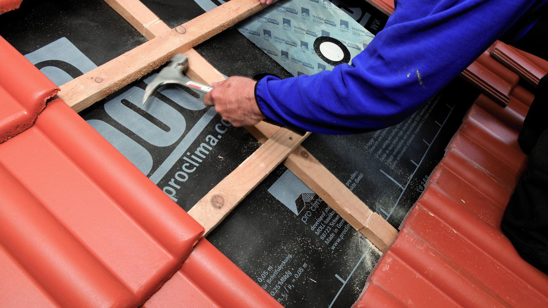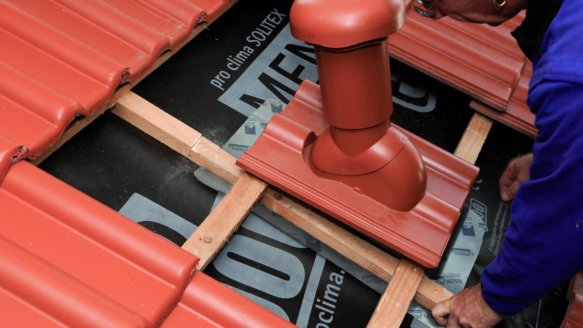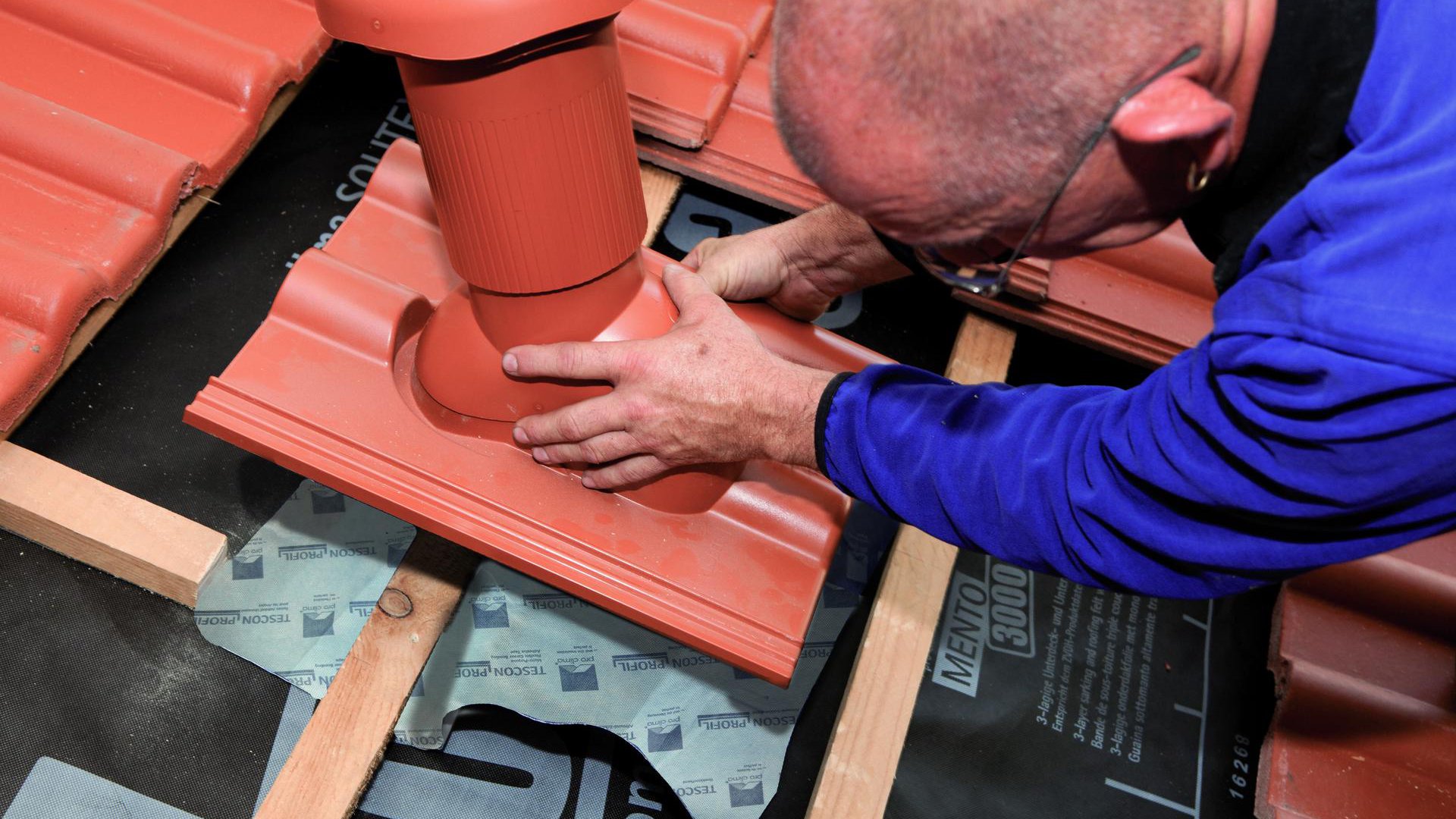Ventilatiepan met manchet op de panlat aan de hand van de dakbedekking uitlijnen.