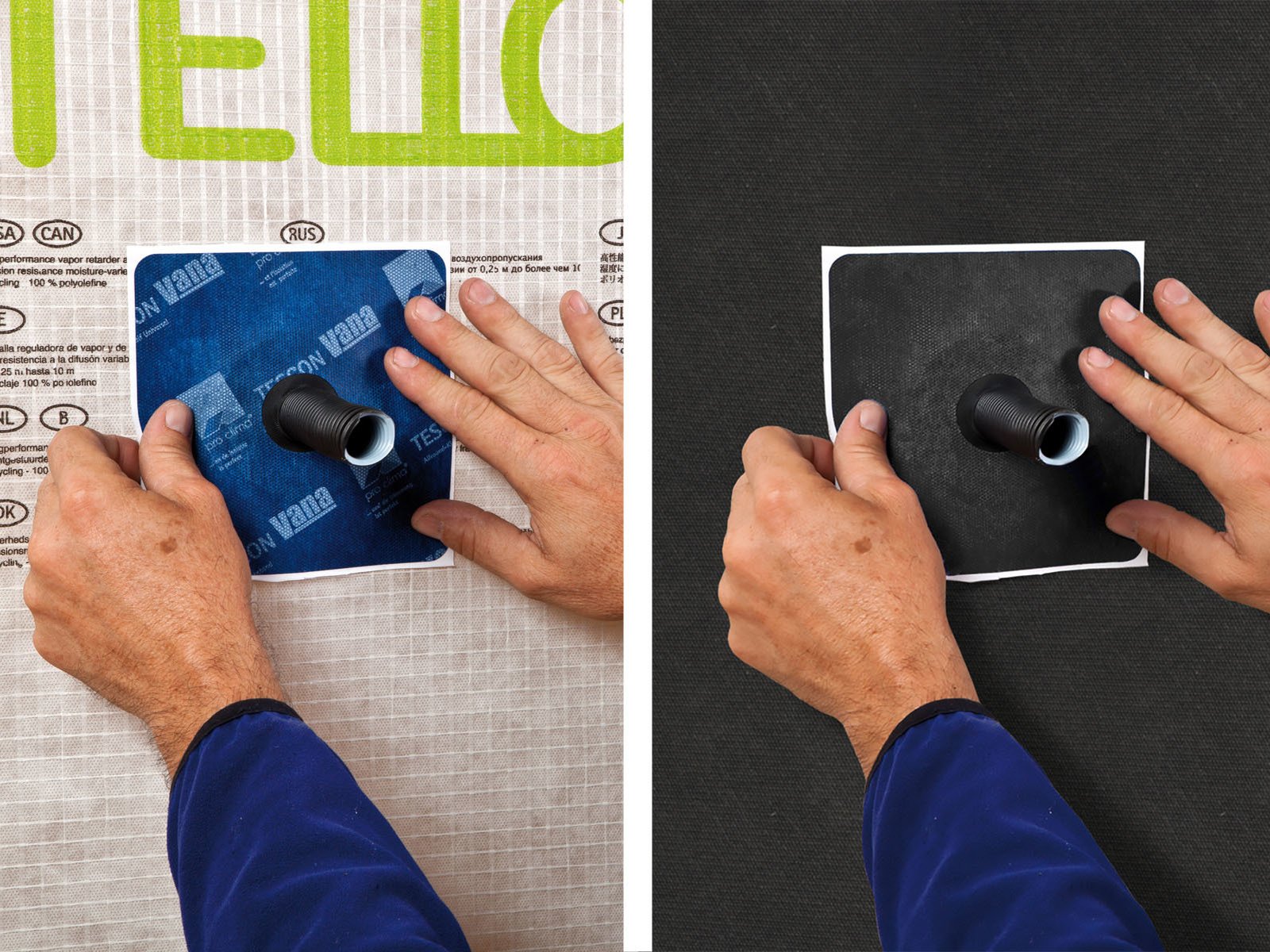 Manchet volvlaks op de af te dichten ondergrond plaatsen, verlijmen, stevig vastwrijven.
